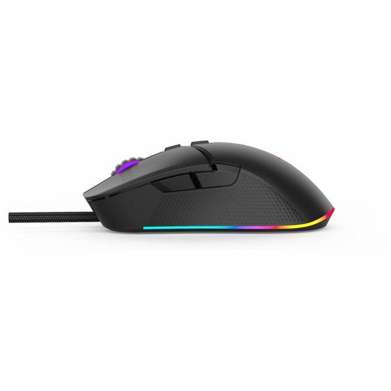Mouse gaming Serioux Kayel, Senzor Sunplus 199, 800-6400 DPI, switch HUANO, pana la 20 milioane de click-uri, 7 Butoane, 6 moduri de iluminare RGB, cablu USB 1.5M, plug and play, compatibil cu Windows 2000/XP/9X/VISTA/7/8/10
